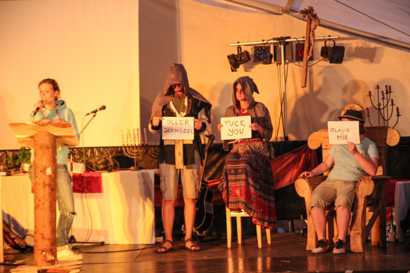 Das diesjährige Teens-SoLa war ein ›VIVA LA REFORMATION‹. In unserer Story begaben sich die Teenager als Mönche und Nonnen in vier unterschiedlichen Klöstern (Schwachianer, Schlaffianer, Schusselianer & Stussianer) auf die Reise in die Gegend nach Grillenburg, wo man streng erzgrilltonisch lebt. Hier trafen sie auf den Reformator Jakob Wurzel, welcher sie zu einem geheimen Treffen eingeladen hatte.